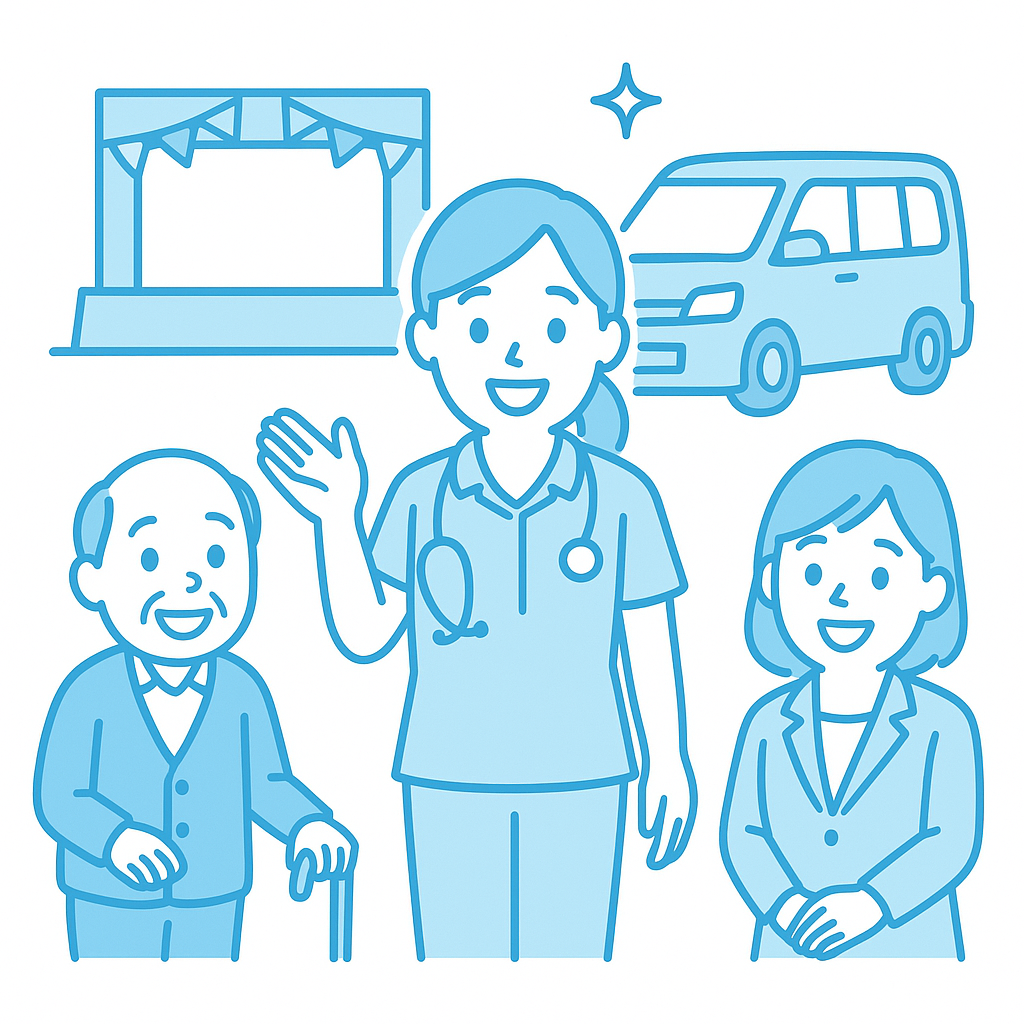 イベント会場での待機看護、利用者の送迎時の付き添いなど、単発のニーズにも柔軟に対応します。