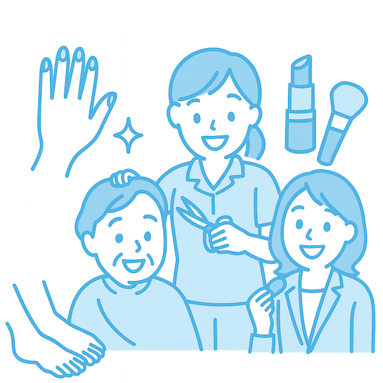 ネイル・ハンドケア・お化粧・ヘアケア・フットマッサージ等、心身の癒しを提供します。